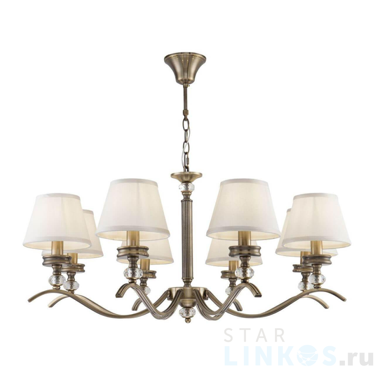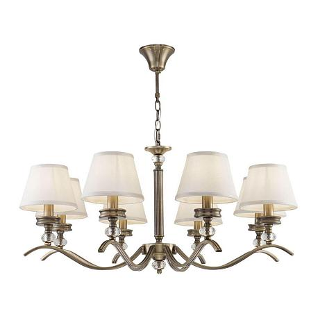 Поставщик рекомендует использовать лампы накаливания с цоколем E14 для освещения площади 17,8 м2. Подвесная люстра Freya Alessandra FR2016PL-08BZ в классическом стиле используется в интерьере гостиной с установкой на потолок.