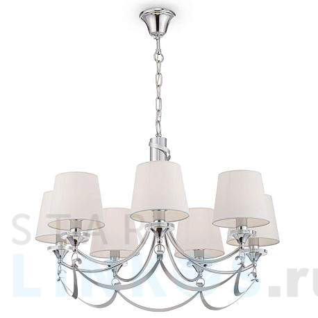 Поставщик рекомендует использовать лампы накаливания с цоколем E14 для освещения площади 15,6 м2. Подвесная люстра Freya Ariana FR5081PL-07CH в используется в интерьере спальни с установкой на потолок.