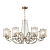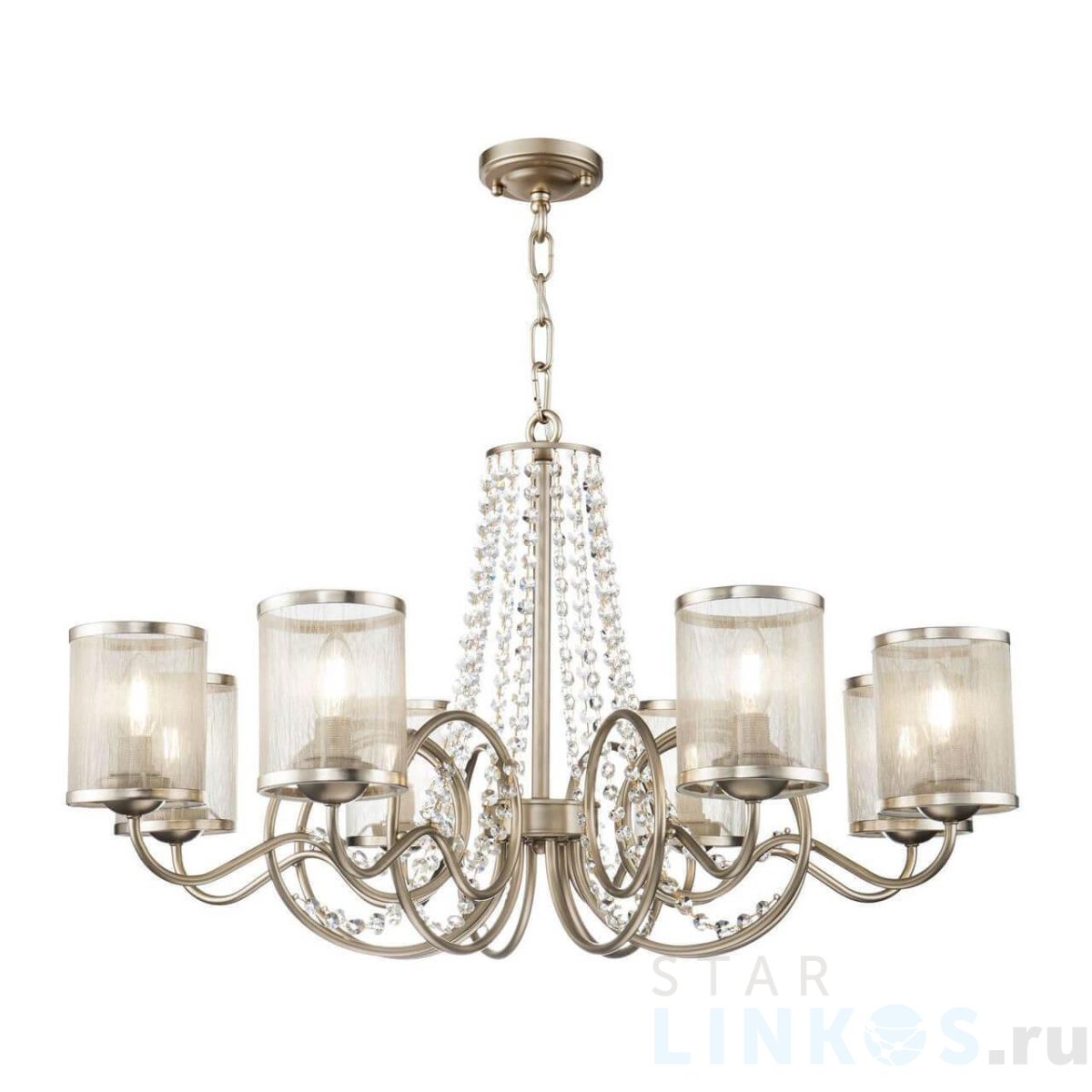 Поставщик рекомендует использовать лампы накаливания с цоколем E14 для освещения площади 17,8 м2. Подвесная люстра Freya Bonadonna FR2036PL-08G в стиле арт-деко используется в интерьере гостиной с установкой на потолок.