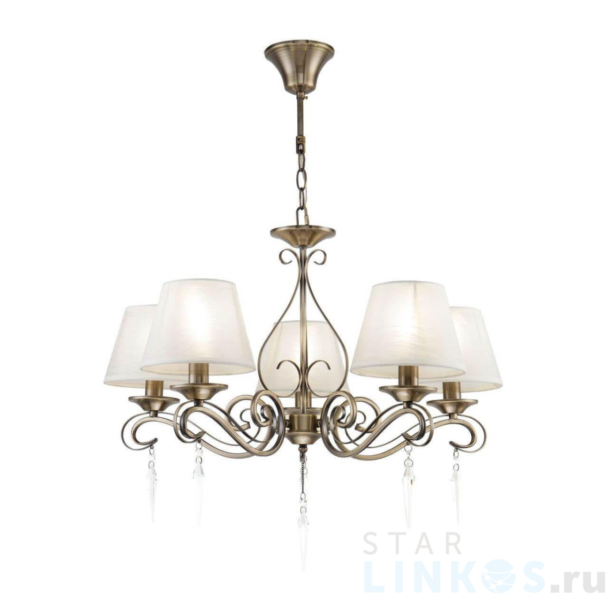 Поставщик рекомендует использовать лампы накаливания с цоколем E14 для освещения площади 11,1 м2. Подвесная люстра Freya Bonfi FR2017PL-05BZ в классическом стиле используется в интерьере спальни с установкой на потолок.
