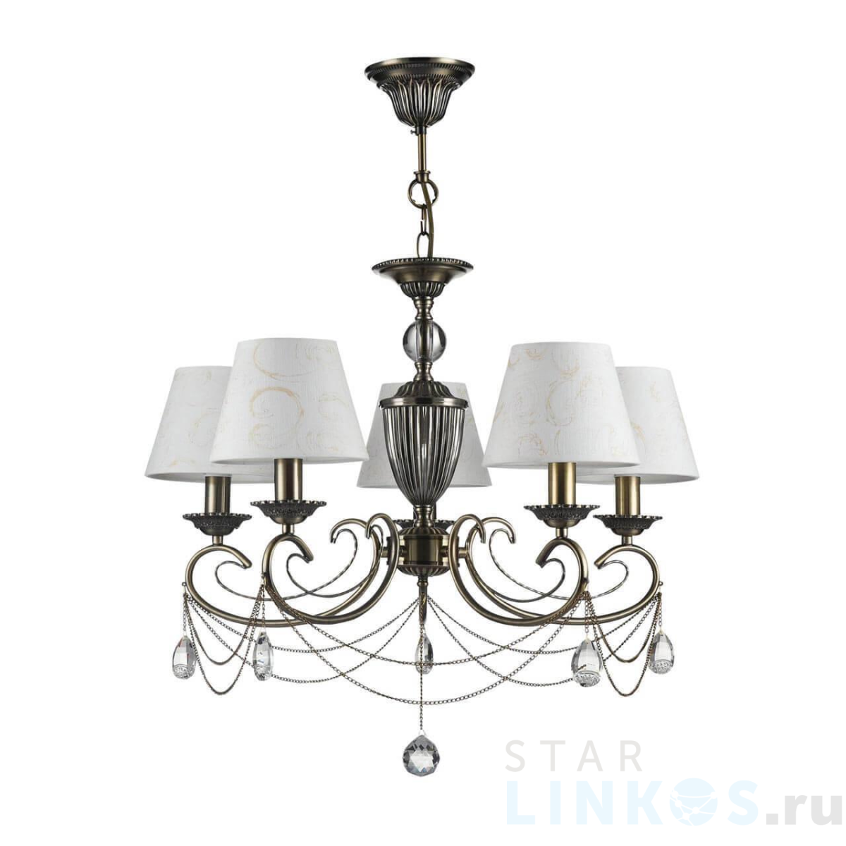 Поставщик рекомендует использовать лампы накаливания с цоколем E14 для освещения площади 11,1 м2. Подвесная люстра Freya Brossard FR2904-PL-05-BZ в стиле арт-деко используется в интерьере спальни с установкой на потолок.