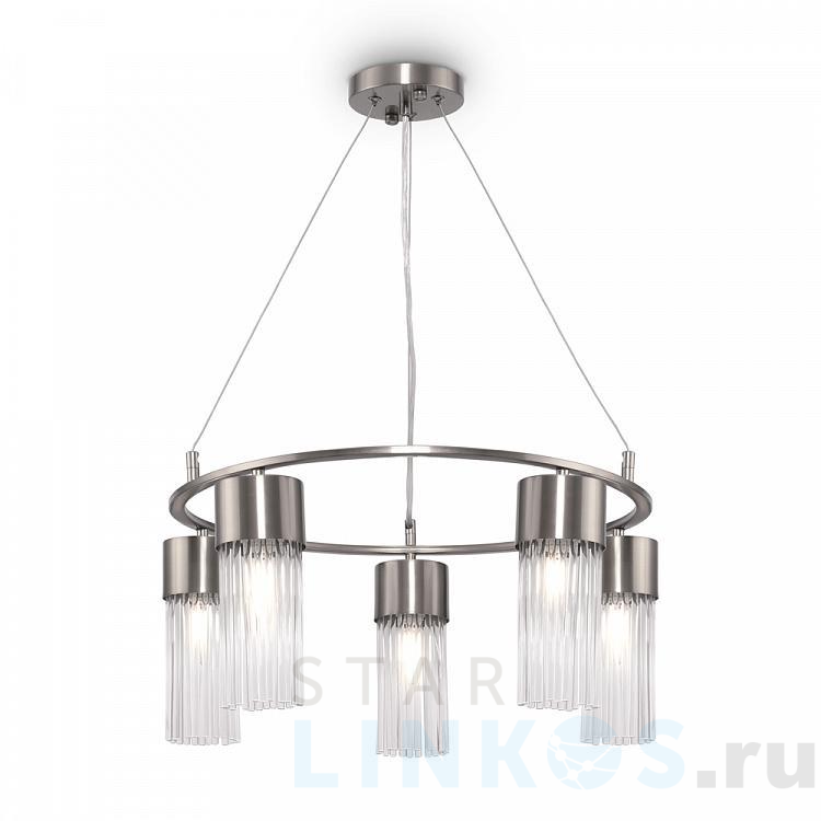 Поставщик рекомендует использовать лампы накаливания с цоколем E14. Подвесная люстра Freya Esala FR5050PL-05N в используется в интерьере гостиной с установкой на потолок.