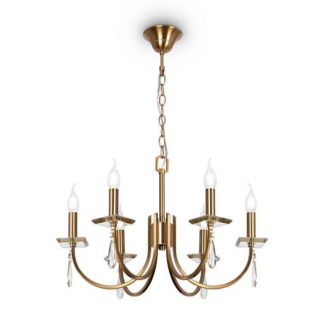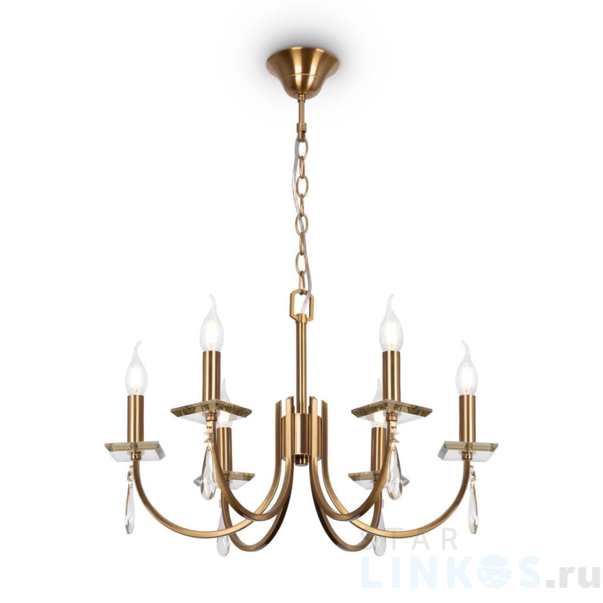 Поставщик рекомендует использовать лампы накаливания с цоколем E14 для освещения площади 13,3 м2. Подвесная люстра Freya Forte FR1006PL-06G в классическом стиле используется в интерьере спальни с установкой на потолок.