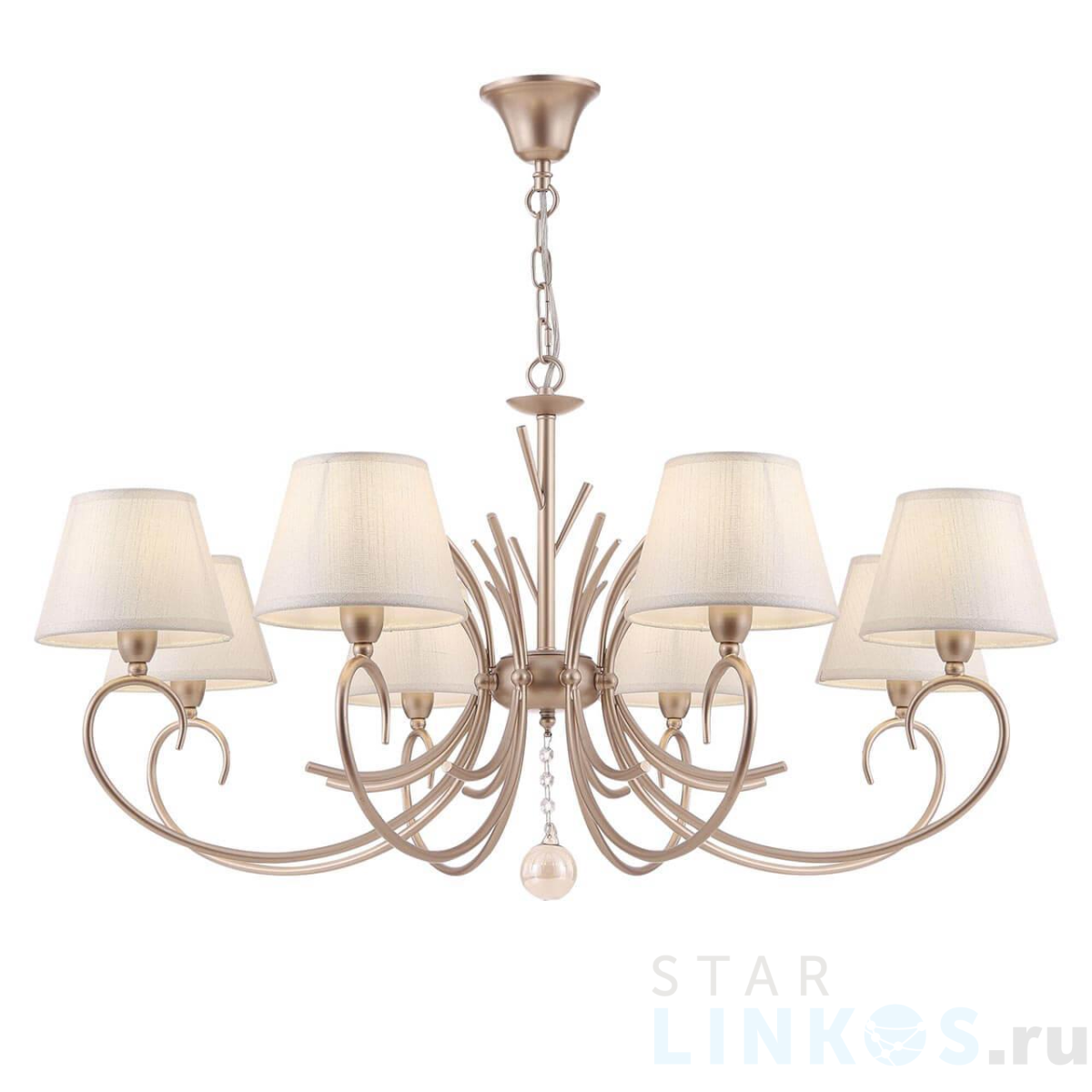Поставщик рекомендует использовать лампы накаливания с цоколем E14. Подвесная люстра Freya Gisela FR2013PL-08G в используется в интерьере гостиной с установкой на потолок.