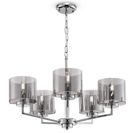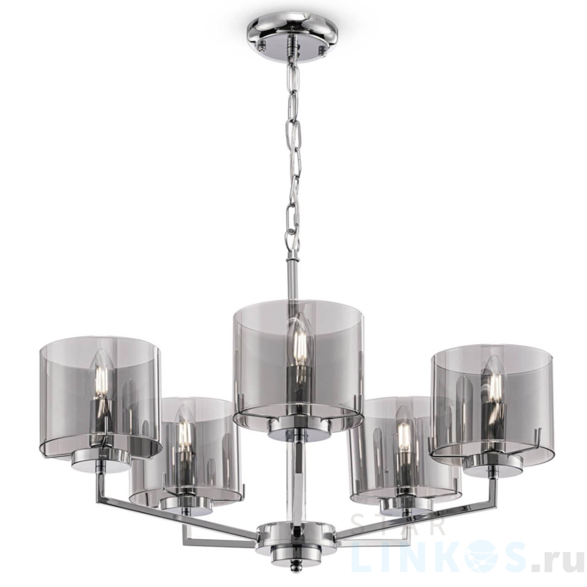 Поставщик рекомендует использовать лампы накаливания с цоколем E14 для освещения площади 11,1 м2. Подвесная люстра Freya Karen FR5096PL-05CH в современном стиле используется в интерьере гостиной с установкой на потолок.