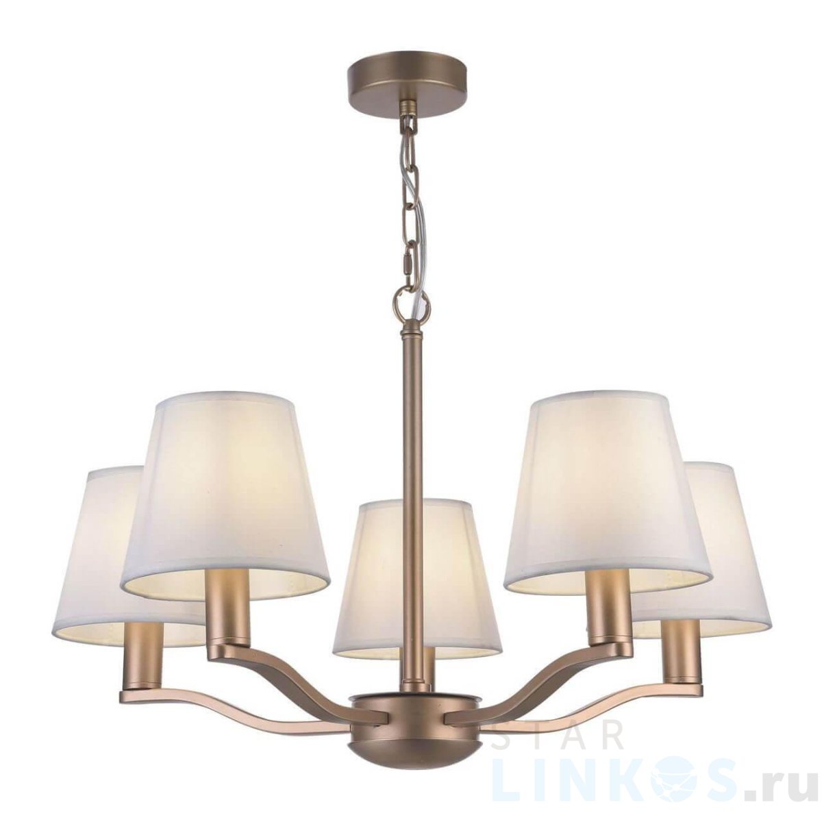 Поставщик рекомендует использовать лампы накаливания с цоколем E14 для освещения площади 16,7 м2. Подвесная люстра Freya Marika FR5671PL-05G в используется в интерьере спальни с установкой на потолок.
