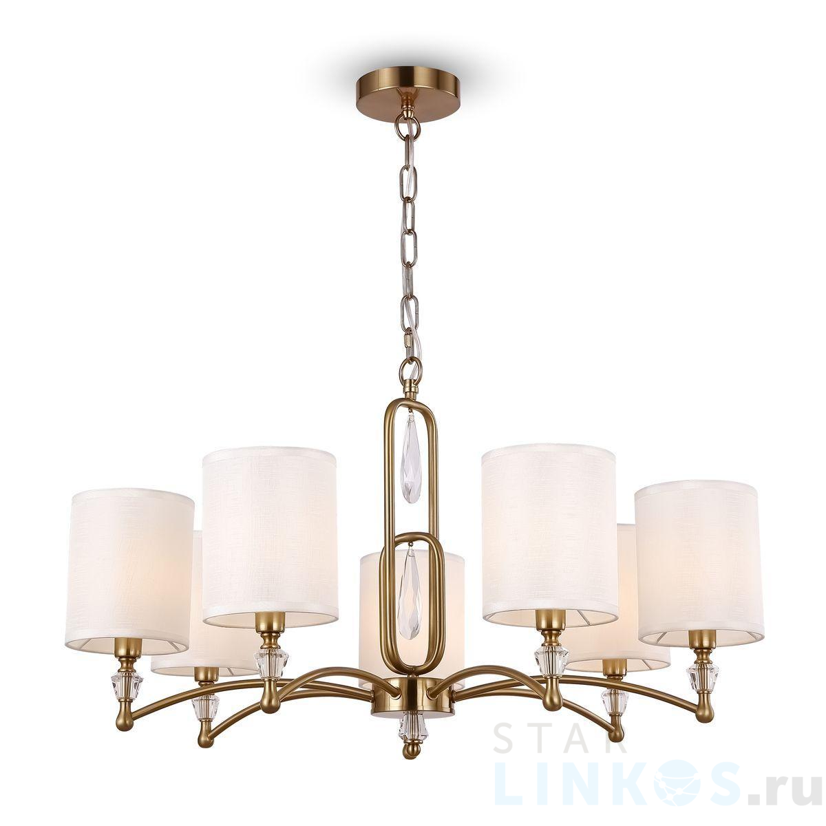 Поставщик рекомендует использовать лампы накаливания с цоколем E14. Подвесная люстра Freya Riverside FR1007PL-07BS в используется в интерьере спальни с установкой на потолок.