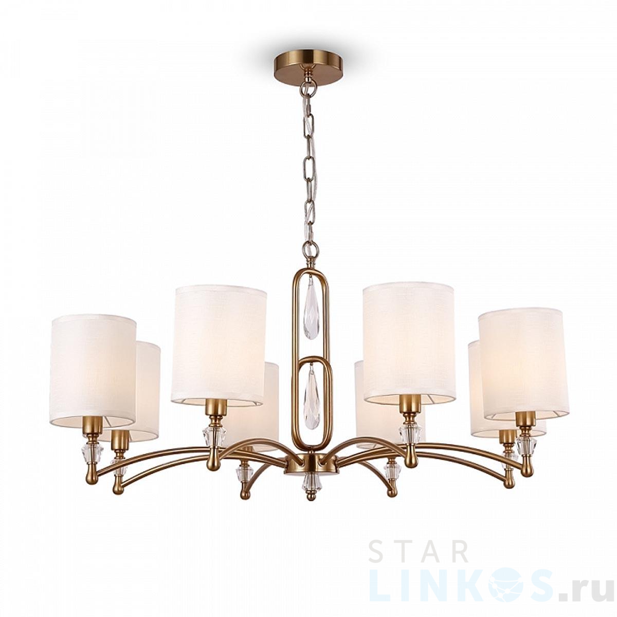 Поставщик рекомендует использовать лампы накаливания с цоколем E14. Подвесная люстра Freya Riverside FR1007PL-08BS в используется в интерьере гостиной с установкой на потолок.