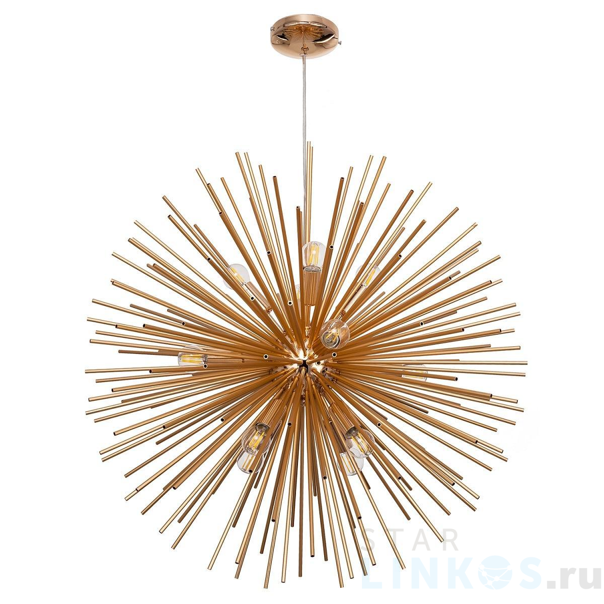 Поставщик рекомендует использовать лампы накаливания с цоколем E14 для освещения площади 27 м2. Подвесная люстра Gerhort G21020/12GD в используется в интерьере гостиной с установкой на потолок.