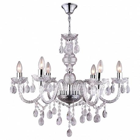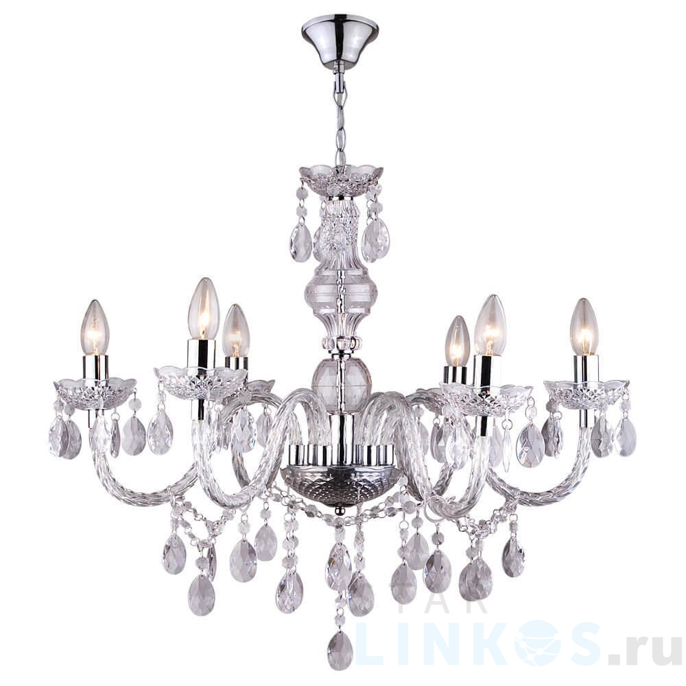 Поставщик рекомендует использовать лампы накаливания с цоколем E14 для освещения площади 13,3 м2. Подвесная люстра Globo Cuimbra 63116-6 в стиле арт-деко используется в интерьере гостиной с установкой на потолок.