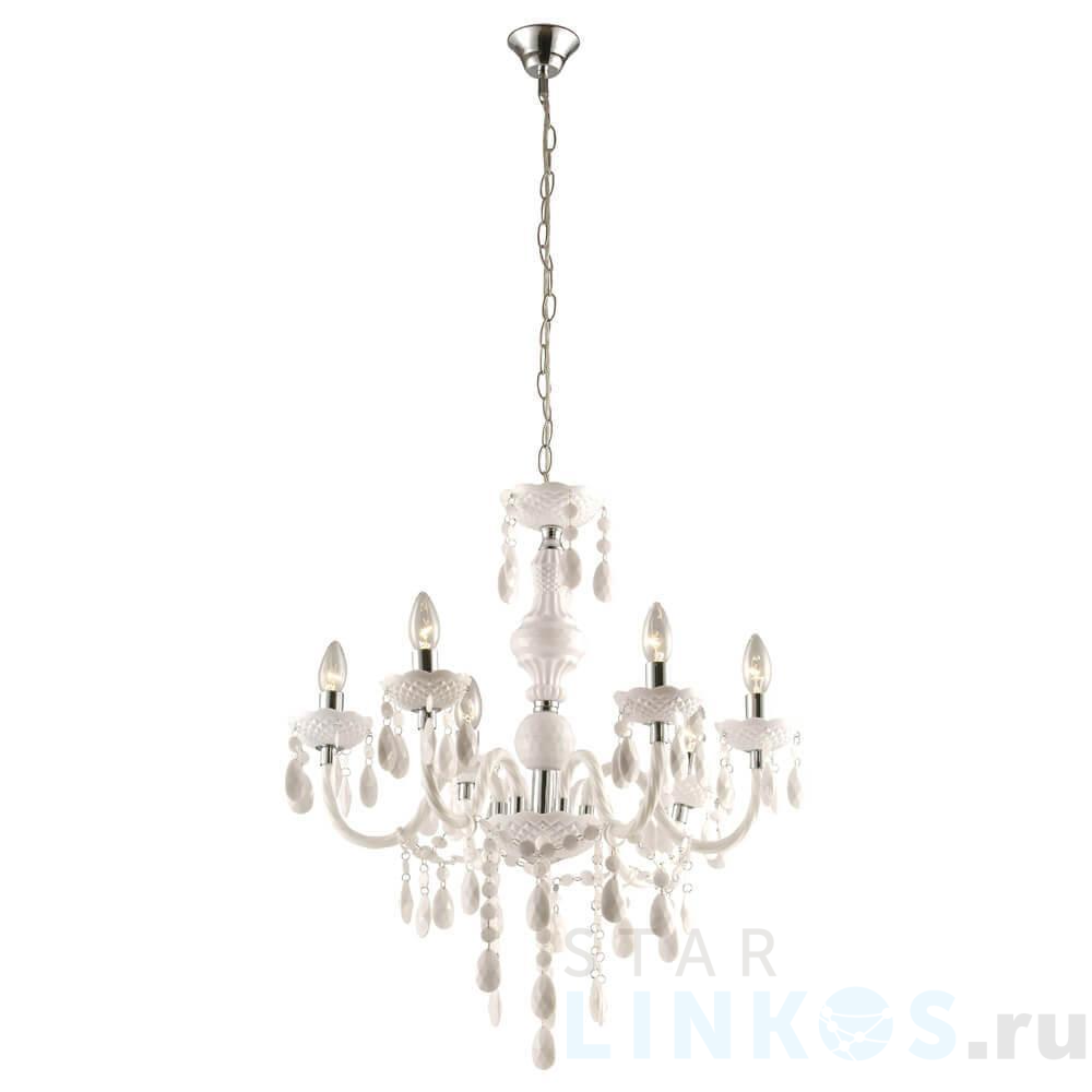 Поставщик рекомендует использовать лампы накаливания с цоколем E14 для освещения площади 13,3 м2. Подвесная люстра Globo Cuimbra I 63113-6 в стиле арт-деко используется в интерьере гостиной с установкой на потолок.