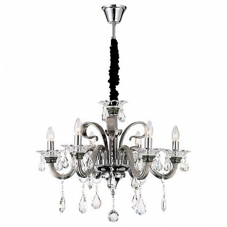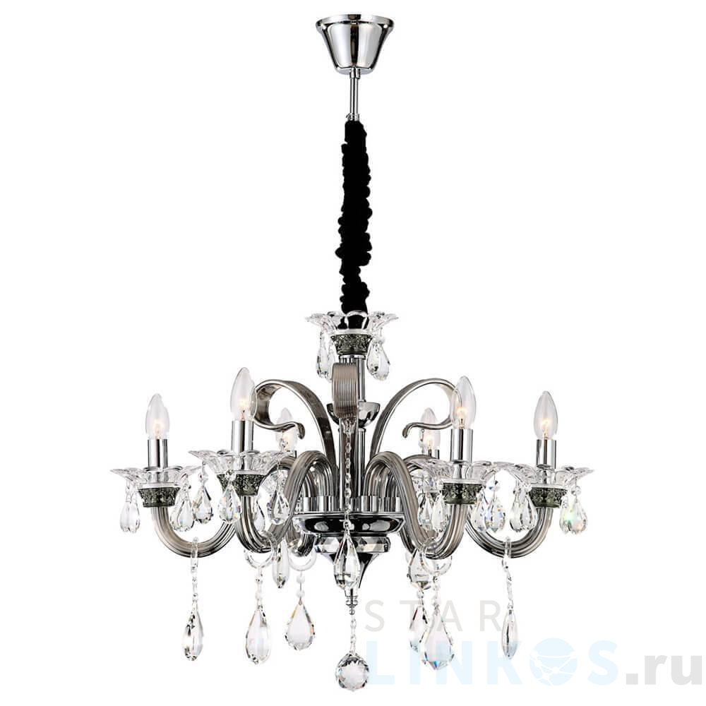 Поставщик рекомендует использовать лампы накаливания с цоколем E14 для освещения площади 13,3 м2. Подвесная люстра Globo Dunja 64104-6 в классическом стиле используется в интерьере гостиной с установкой на потолок.