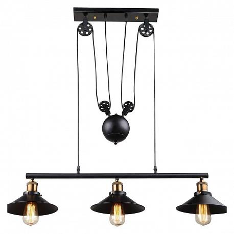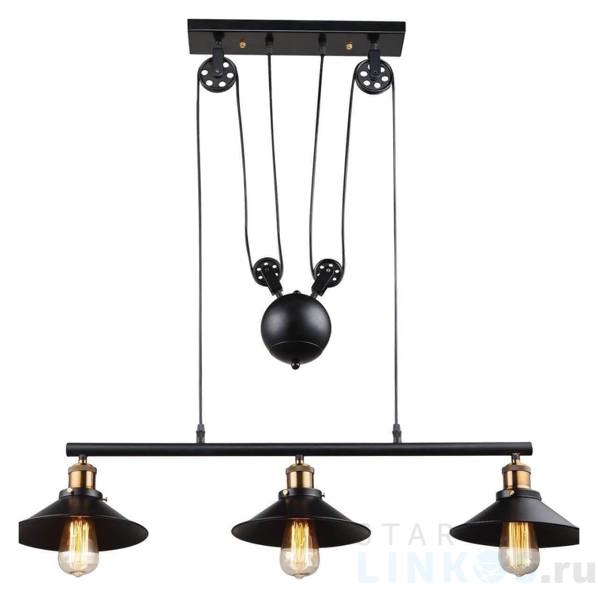 Поставщик рекомендует использовать лампы накаливания с цоколем E27 для освещения площади 10 м2. Подвесная люстра Globo Lenius 15053-3 в стиле лофт используется в интерьере кухни с установкой на потолок.