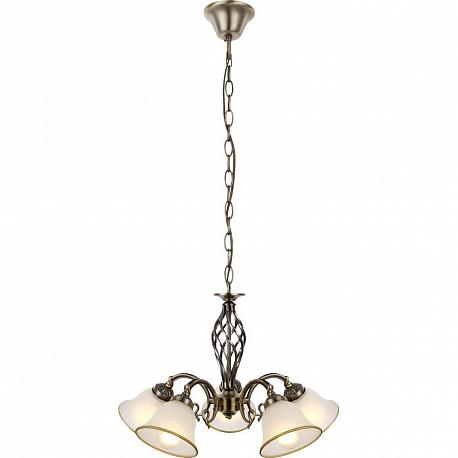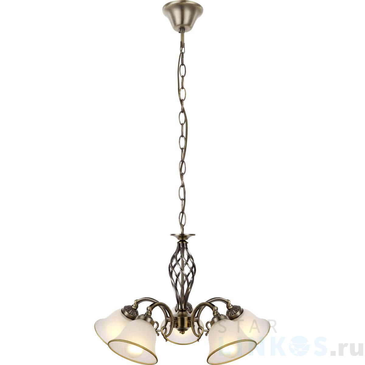 Поставщик рекомендует использовать лампы накаливания с цоколем E27 для освещения площади 16,7 м2. Подвесная люстра Globo Odin 60208-5 в используется в интерьере спальни с установкой на потолок.