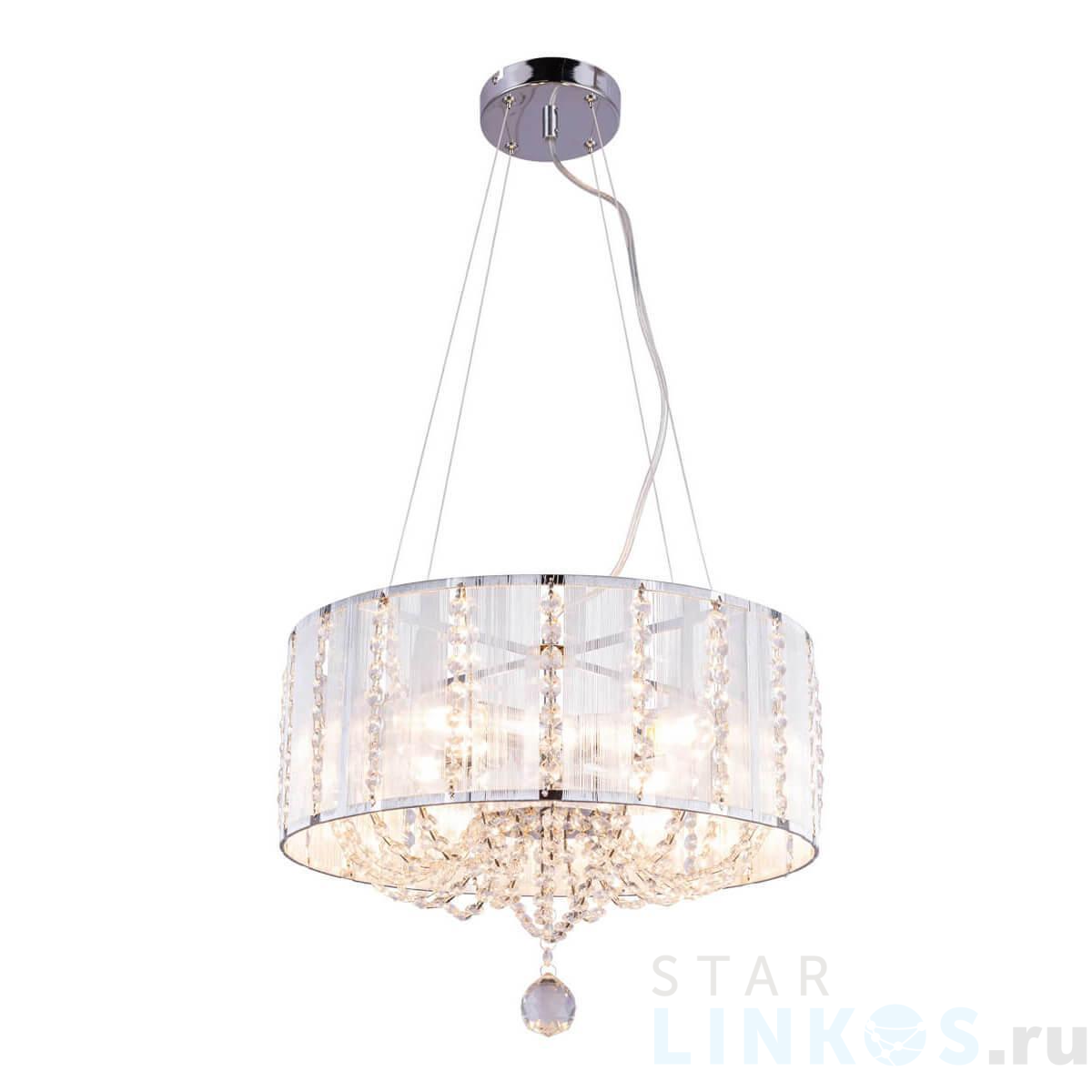 Поставщик рекомендует использовать лампы накаливания с цоколем E14. Подвесная люстра Globo Walla 15091H в современном стиле используется в интерьере спальни с установкой на потолок.