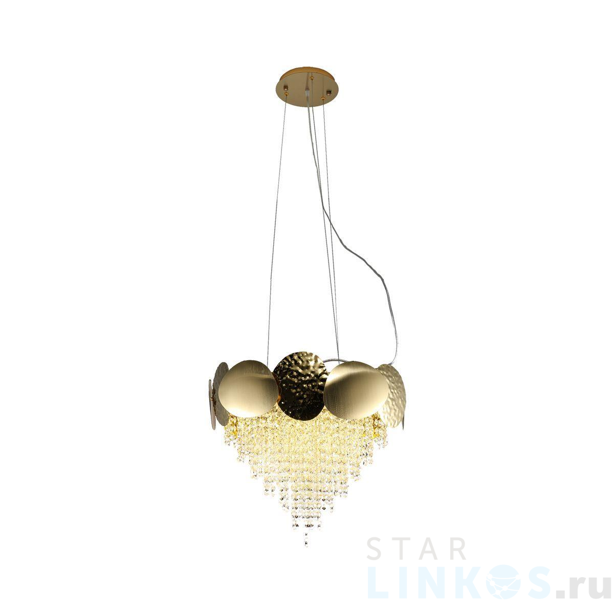 Подвесная люстра Hiper Gloria H165-3 в стиле арт-деко используется в интерьере спальни с установкой на потолок.