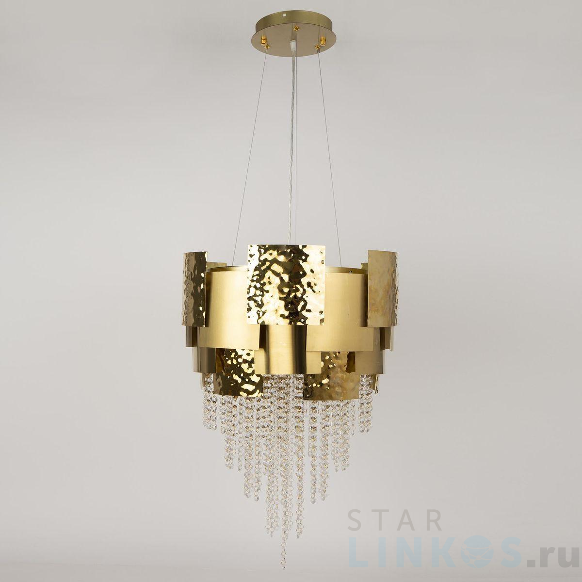 Поставщик рекомендует использовать лампы накаливания с цоколем E14 для освещения площади 17,8 м2. Подвесная люстра Hiper Gloria H165-4 в стиле арт-деко используется в интерьере гостиной с установкой на потолок.