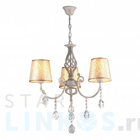 Поставщик рекомендует использовать лампы накаливания с цоколем E27 для освещения площади 10 м2. Подвесная люстра Hiper Samanta H056-3 в используется в интерьере спальни с установкой на потолок.