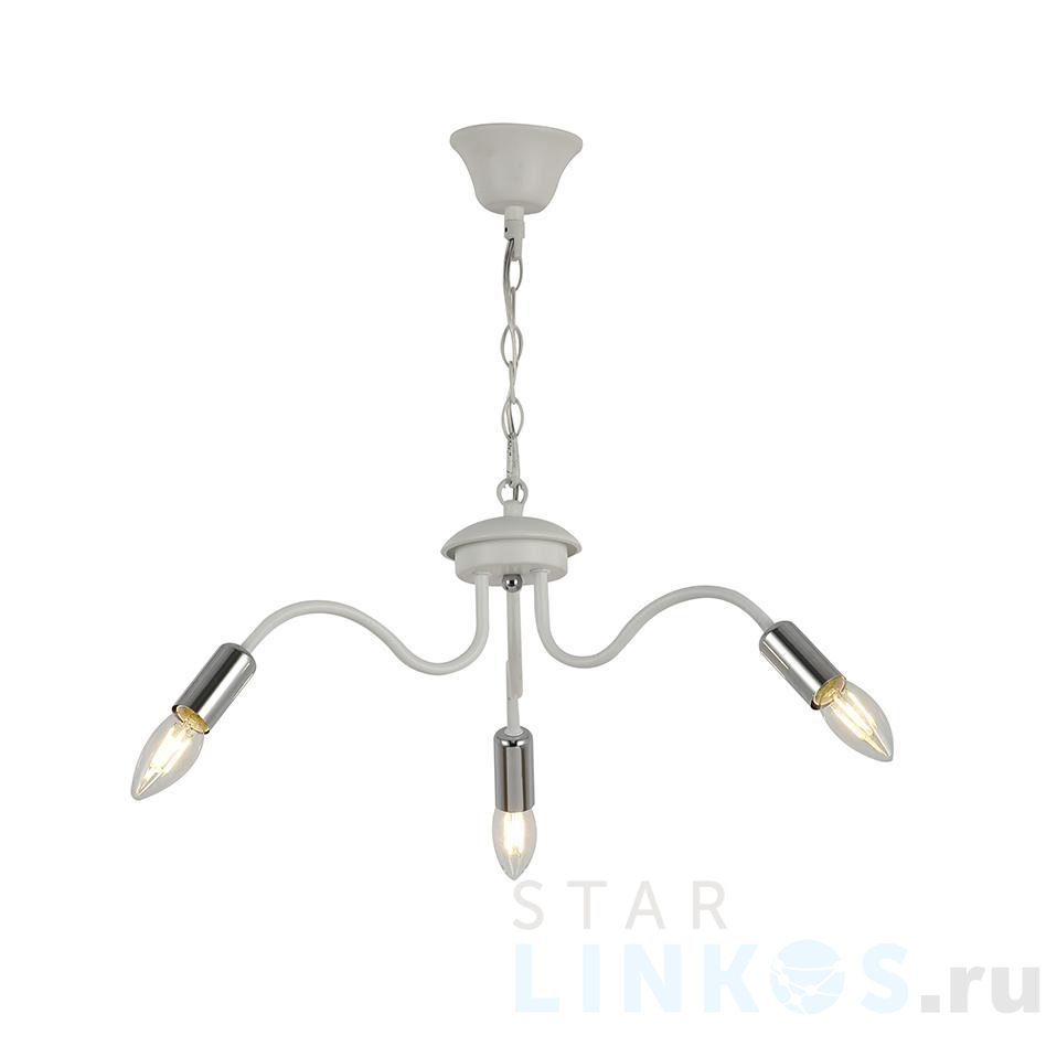 Поставщик рекомендует использовать лампы накаливания с цоколем E14 для освещения площади 6,7 м2. Подвесная люстра Hiper Savona H123-3 в используется в интерьере спальни с установкой на потолок.