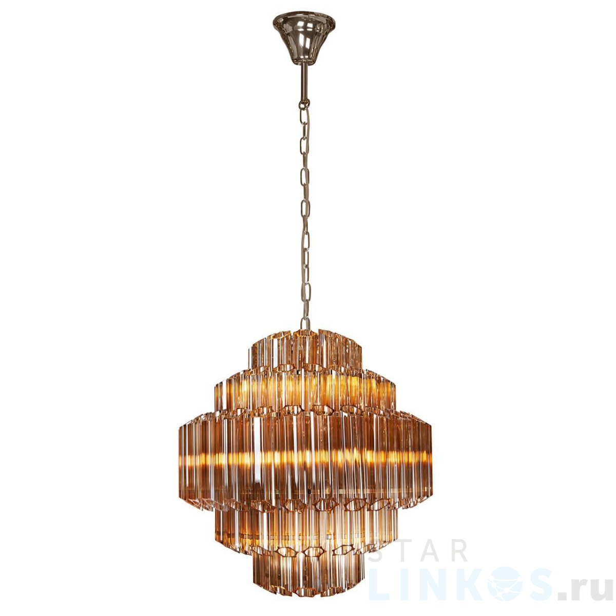 Поставщик рекомендует использовать лампы накаливания с цоколем E14 для освещения площади 9,7 м2. Подвесная люстра iLamp Destiny MD0267-7B в используется в интерьере кухни с установкой на потолок.
