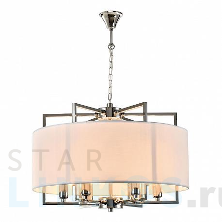 Поставщик рекомендует использовать лампы накаливания с цоколем E14. Подвесная люстра iLamp Divole P9505-6 NIC в используется в интерьере спальни с установкой на потолок.