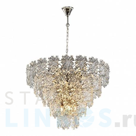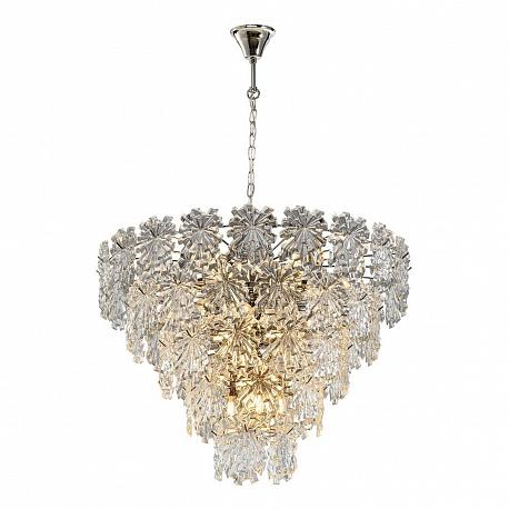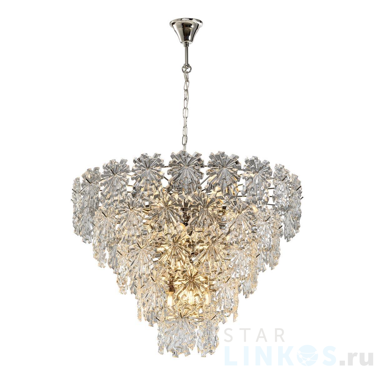 Поставщик рекомендует использовать лампы накаливания с цоколем E14. Подвесная люстра iLamp Homy P2545-18 NIC в используется в интерьере гостиной с установкой на потолок.