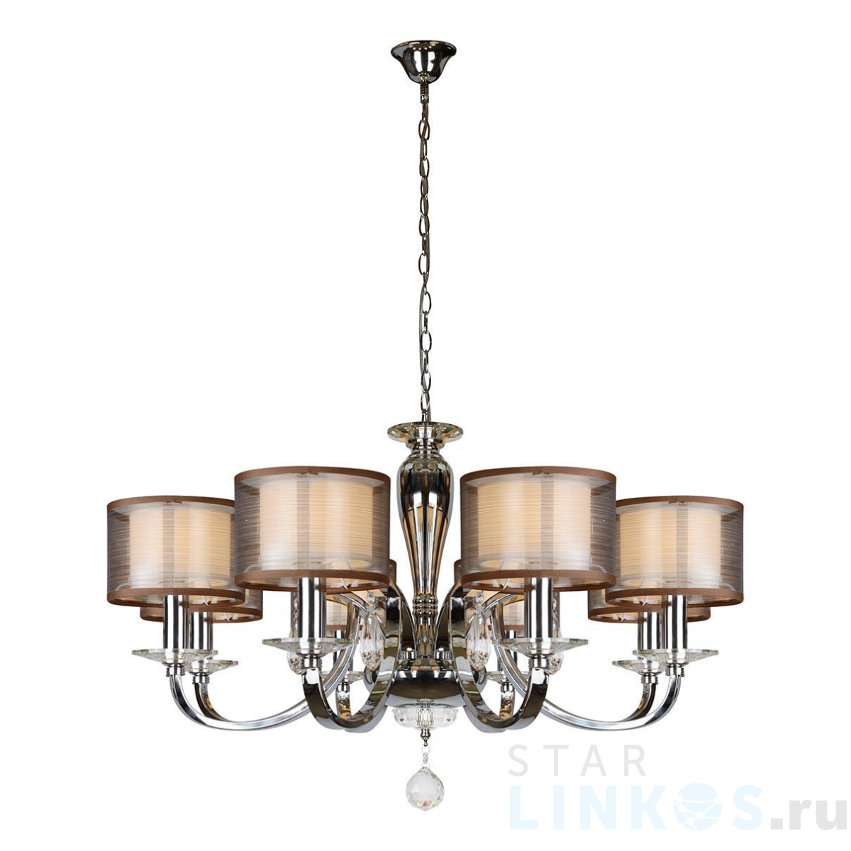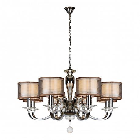 Поставщик рекомендует использовать лампы накаливания с цоколем E14 для освещения площади 17,8 м2. Подвесная люстра iLamp Mario RM16001/8CR в классическом стиле используется в интерьере гостиной с установкой на потолок.