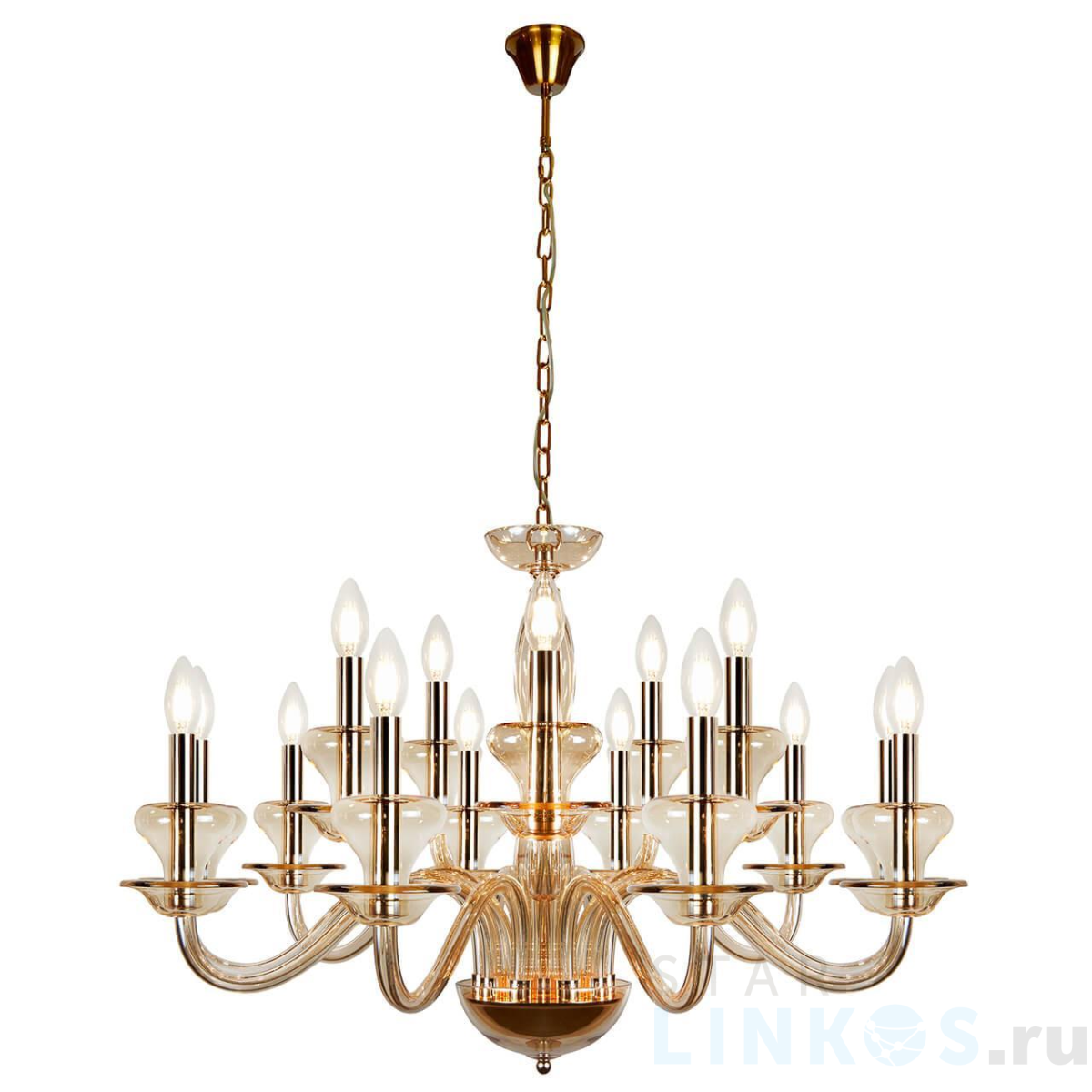 Поставщик рекомендует использовать лампы накаливания с цоколем E14 для освещения площади 33,3 м2. Подвесная люстра iLamp Mercury P9448-10+5 Gold в используется в интерьере больших залов с установкой на потолок.