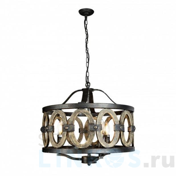 Поставщик рекомендует использовать лампы накаливания с цоколем E14 для освещения площади 6 м2. Подвесная люстра iLamp Organic Loft192-3 в кантри-стиле используется в интерьере кухни с установкой на потолок.