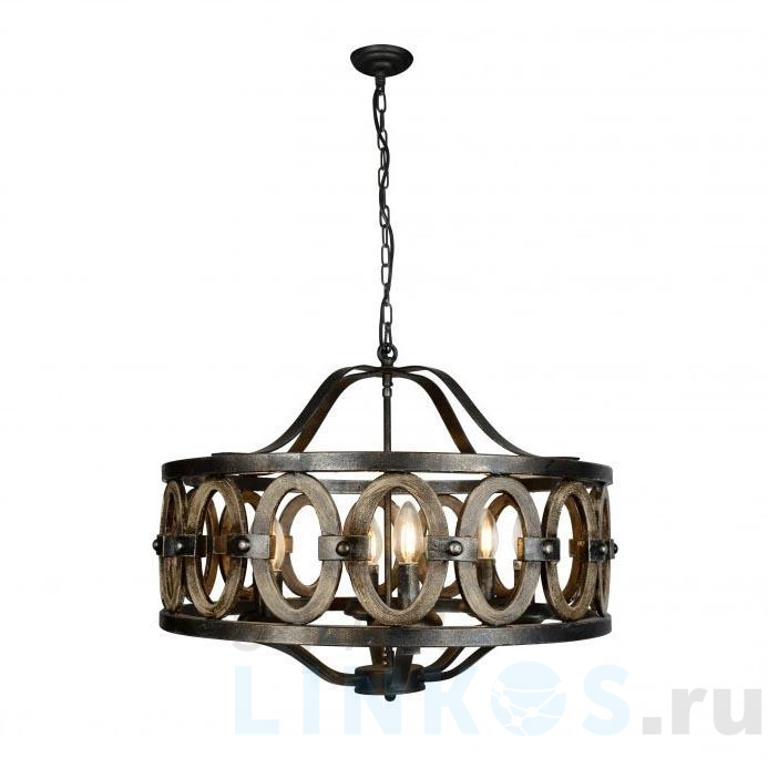Поставщик рекомендует использовать лампы накаливания с цоколем E14 для освещения площади 12 м2. Подвесная люстра iLamp Organic Loft192-6 в кантри-стиле используется в интерьере кухни с установкой на потолок.