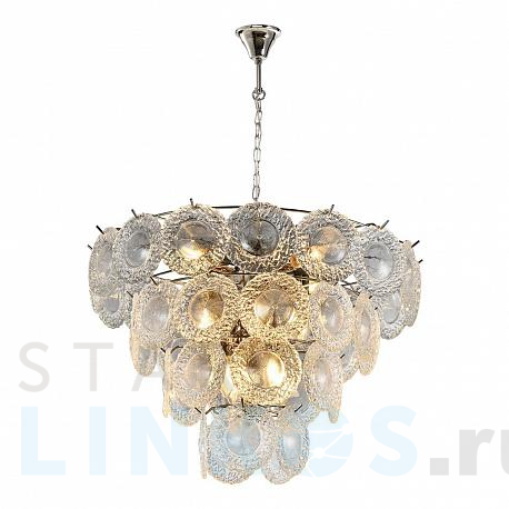 Поставщик рекомендует использовать лампы накаливания с цоколем E14. Подвесная люстра iLamp Rockfeller P2549-12 NIC в используется в интерьере гостиной с установкой на потолок.