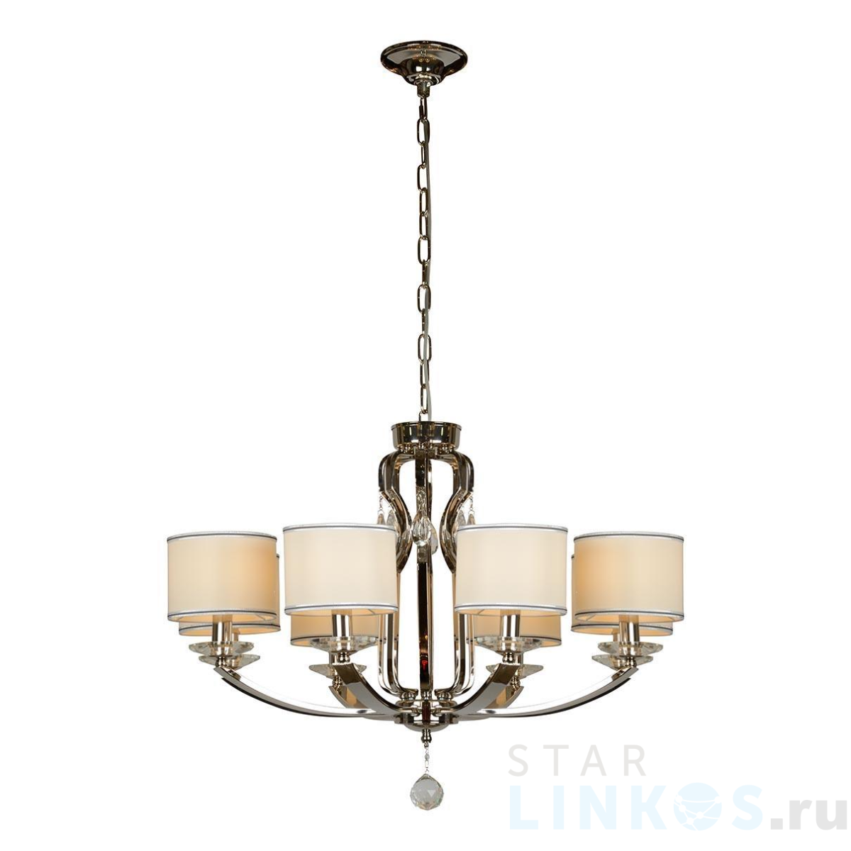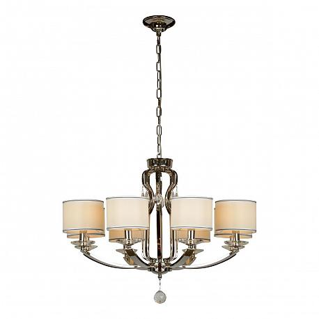 Поставщик рекомендует использовать лампы накаливания с цоколем E14 для освещения площади 17,8 м2. Подвесная люстра iLamp Urban 88189/8 CR в стиле арт-деко используется в интерьере гостиной с установкой на потолок.