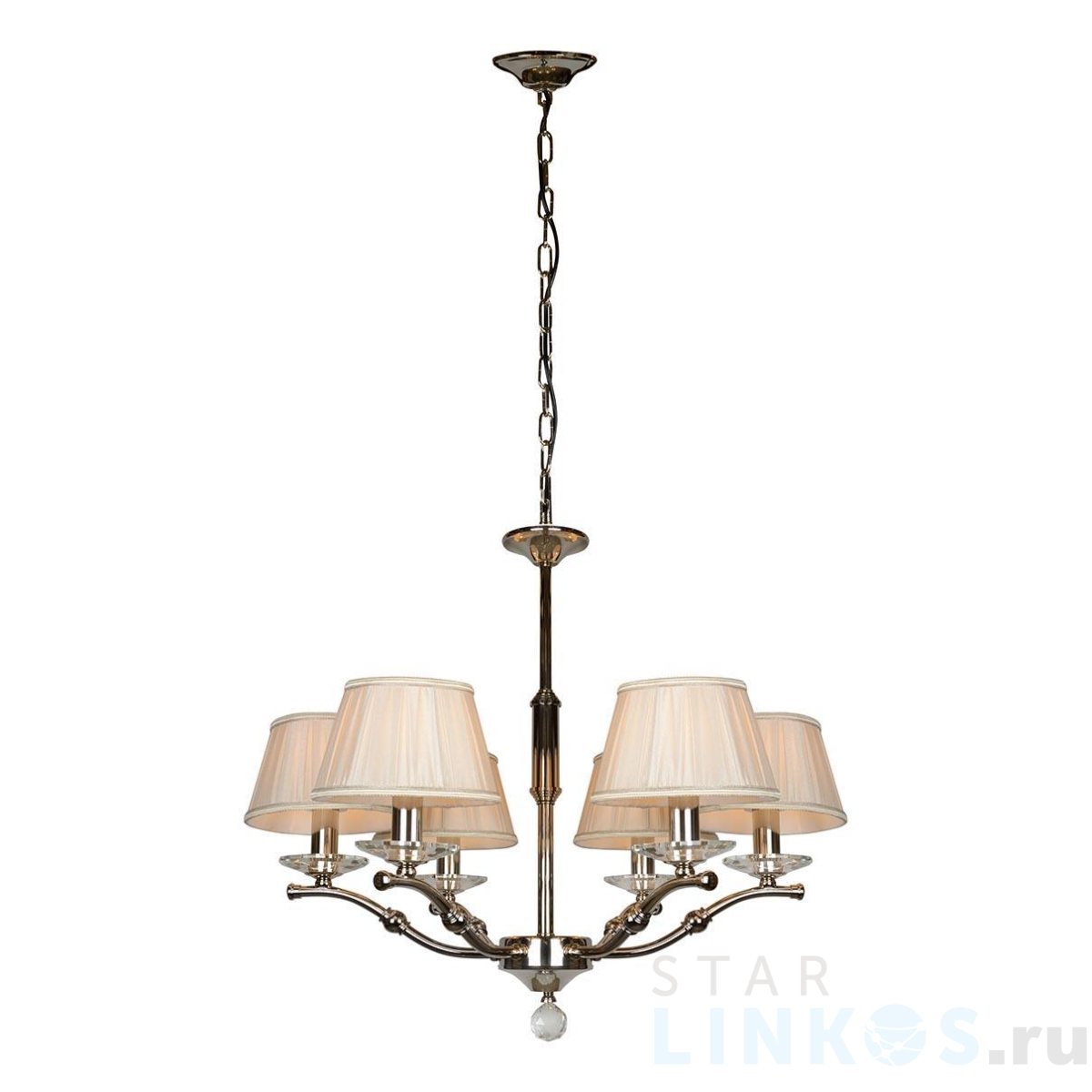 Поставщик рекомендует использовать лампы накаливания с цоколем E14 для освещения площади 13,3 м2. Подвесная люстра iLamp Vivaldi 85125/6 CR в используется в интерьере спальни с установкой на потолок.