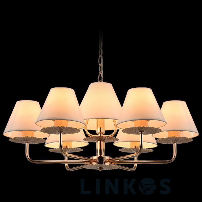 Поставщик рекомендует использовать лампы накаливания с цоколем E14 для освещения площади 48 м2. Подвесная люстра Illumico IL6197-6P-17 GD в используется в интерьере гостиной с установкой на потолок.