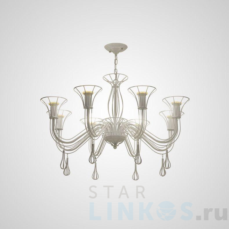 Поставщик рекомендует использовать лампы накаливания с цоколем E27 для освещения площади 24 м2. Подвесная люстра Imperium Loft Cast 181893-26 в используется в интерьере гостиной с установкой на потолок.