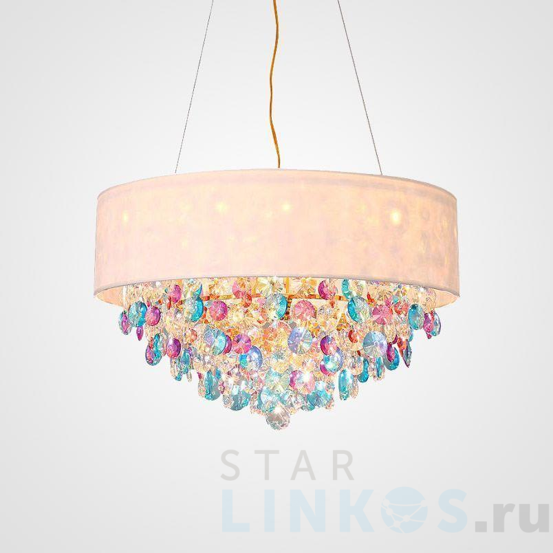 Поставщик рекомендует использовать лампы накаливания с цоколем E14 для освещения площади 27 м2. Подвесная люстра Imperium Loft Kaleidoscope 167635-26 в используется в интерьере гостиной с установкой на потолок.