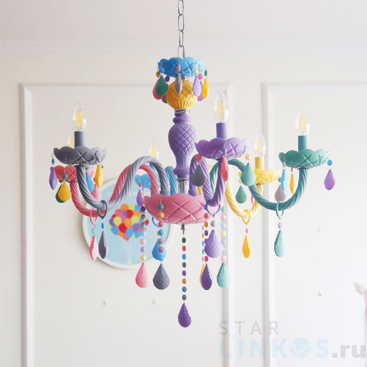Подвесная люстра Imperium Loft Rainbow 196805-26 в современном стиле используется в интерьере детской с установкой на потолок.