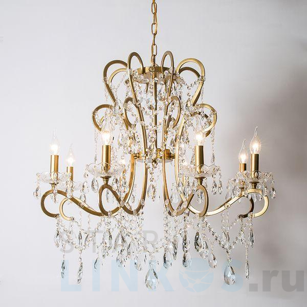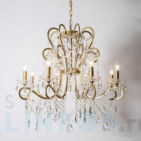 Поставщик рекомендует использовать лампы накаливания с цоколем E14 для освещения площади 12 м2. Подвесная люстра Imperium Loft Venetzia 108183-28 в классическом стиле используется в интерьере гостиной с установкой на потолок.