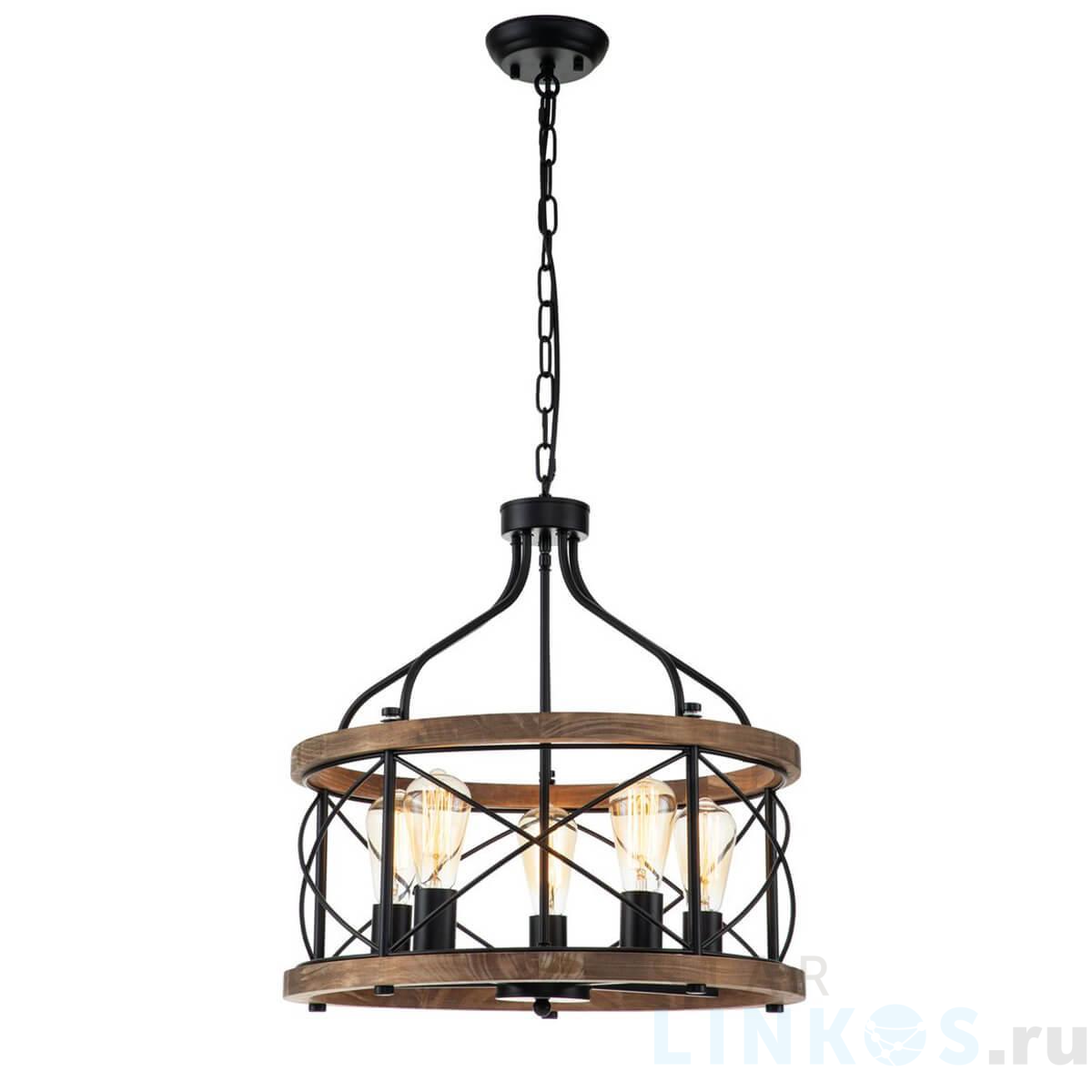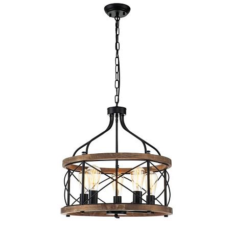 Поставщик рекомендует использовать лампы накаливания с цоколем E27 для освещения площади 18 м2. Подвесная люстра Indigo Camino 10017/5P Black V000206 в кантри-стиле используется в интерьере гостиной с установкой на потолок.