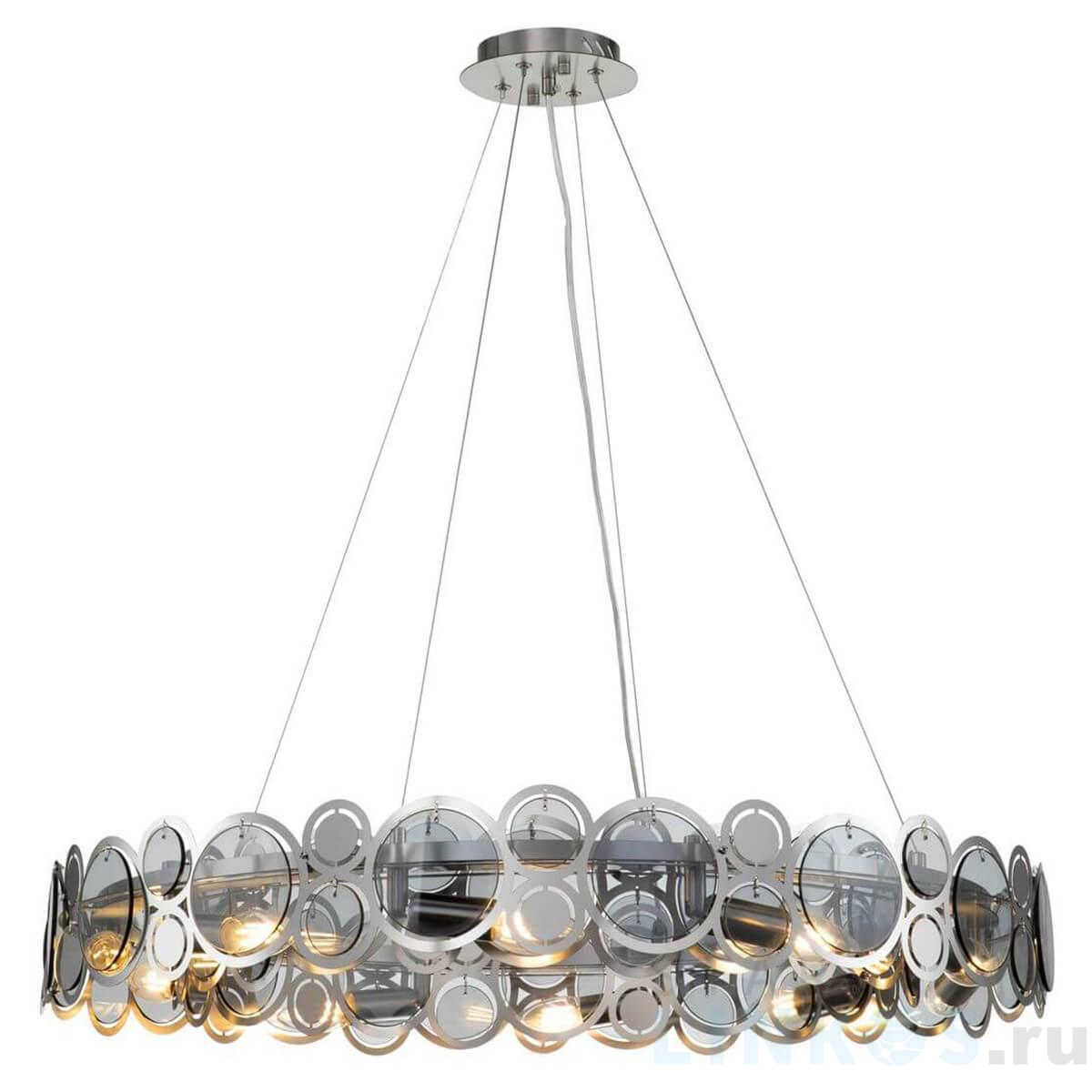 Поставщик рекомендует использовать лампы накаливания с цоколем E14 для освещения площади 24 м2. Подвесная люстра Indigo Sole 12016/10P Nickel V000006 в стиле арт-деко используется в интерьере гостиной с установкой на потолок.