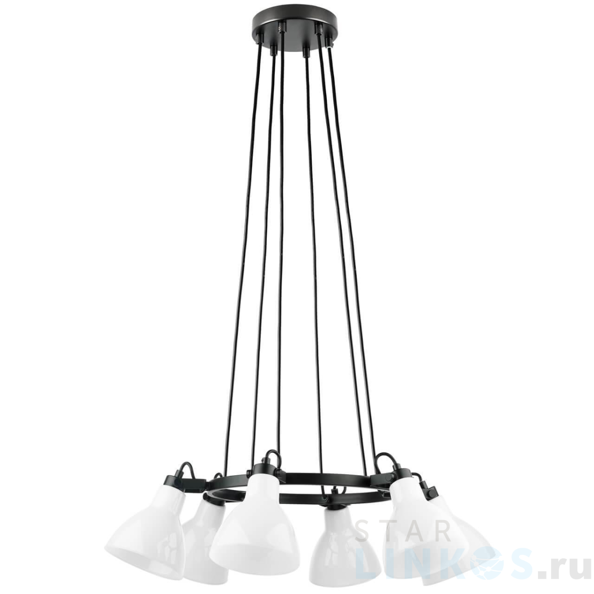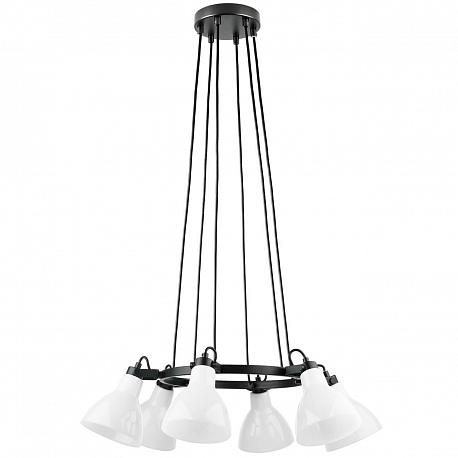 Поставщик рекомендует использовать лампы накаливания с цоколем E14 для освещения площади 13,3 м2. Подвесная люстра Lightstar Acrobata 761160 в стиле лофт используется в интерьере спальни с установкой на потолок.