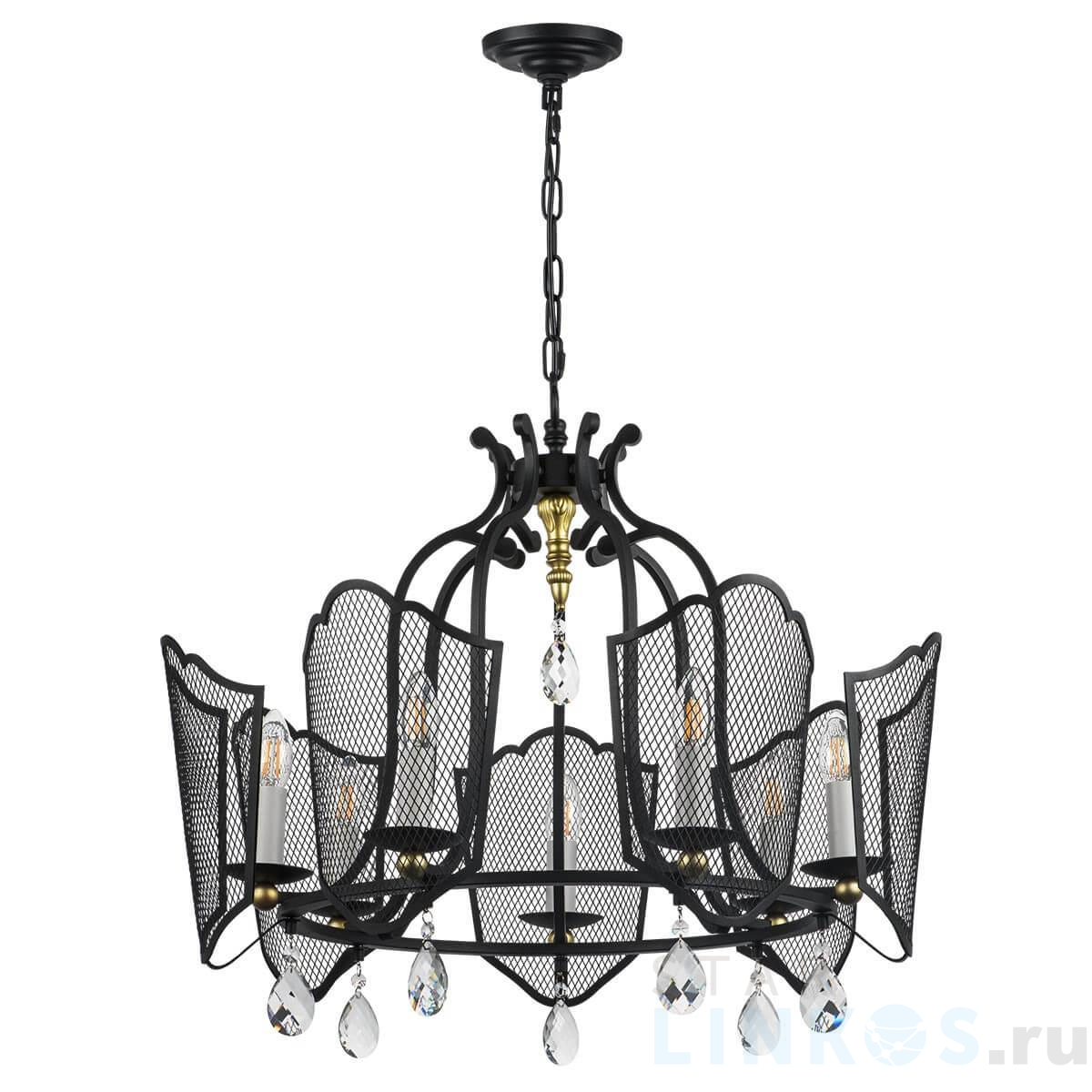 Поставщик рекомендует использовать лампы накаливания с цоколем E14. Подвесная люстра Lightstar Castello 744077 в классическом стиле используется в интерьере гостиной с установкой на потолок.