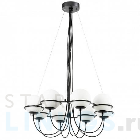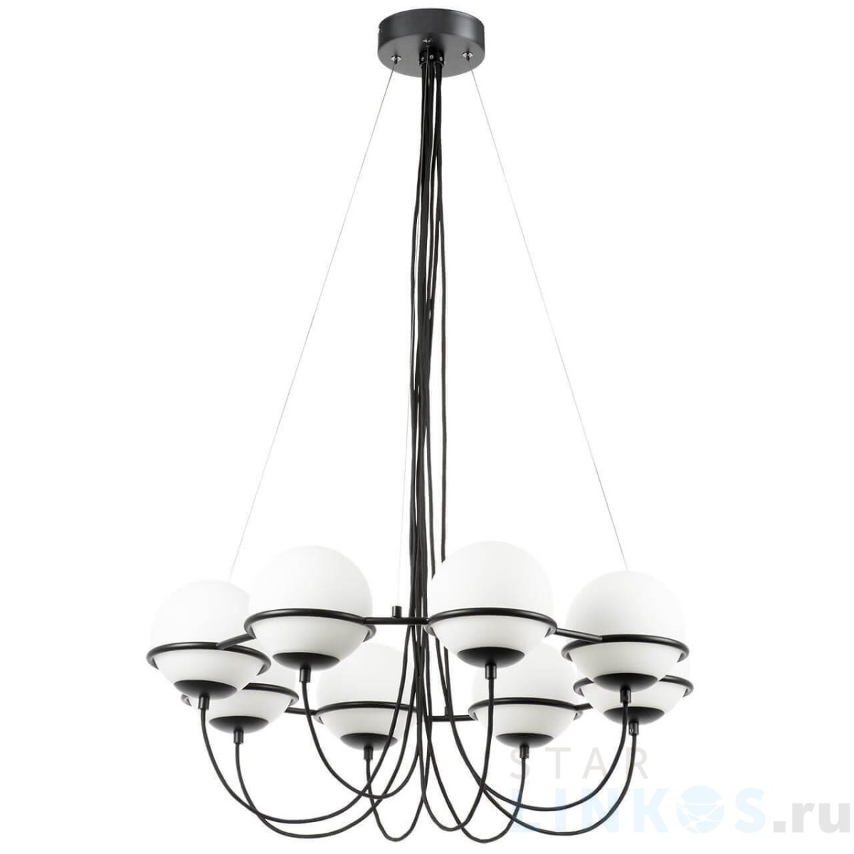 Поставщик рекомендует использовать лампы накаливания с цоколем E14 для освещения площади 17,8 м2. Подвесная люстра Lightstar Globo 803287 в стиле арт-деко используется в интерьере гостиной с установкой на потолок.