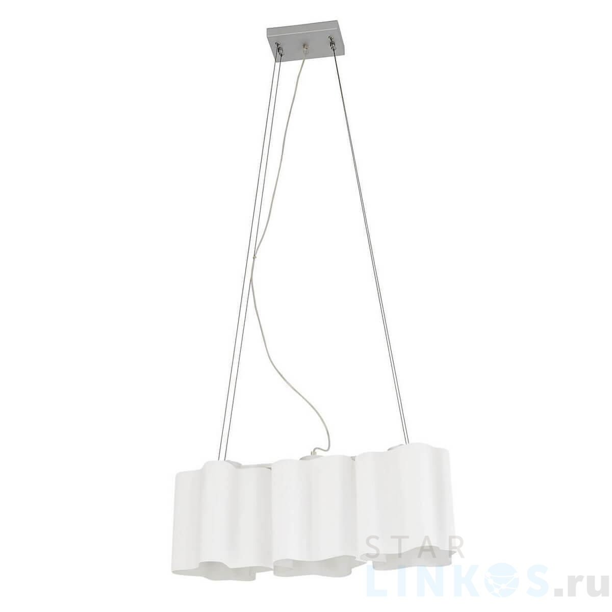 Поставщик рекомендует использовать лампы накаливания с цоколем E27 для освещения площади 6,7 м2. Подвесная люстра Lightstar Nubi 802130 в стиле арт-деко используется в интерьере кухни с установкой на потолок.
