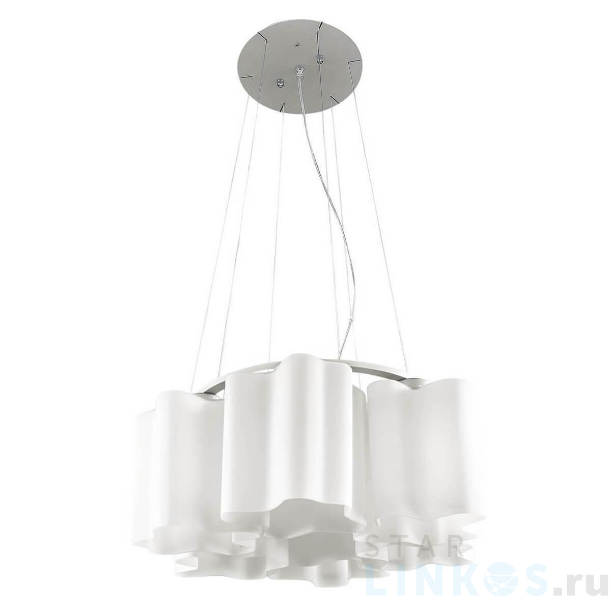 Поставщик рекомендует использовать лампы накаливания с цоколем E27 для освещения площади 13,3 м2. Подвесная люстра Lightstar Nubi 802160 в стиле арт-деко используется в интерьере гостиной с установкой на потолок.