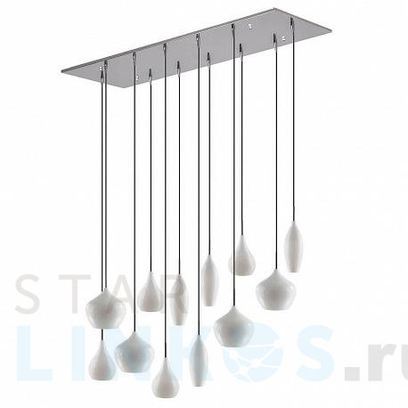 Поставщик рекомендует использовать лампы накаливания с цоколем E14 для освещения площади 26,7 м2. Подвесная люстра Lightstar Pentola 803120 в стиле арт-деко используется в интерьере гостиной с установкой на потолок.