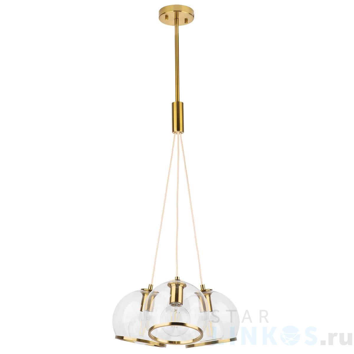 Поставщик рекомендует использовать лампы накаливания с цоколем E27 для освещения площади 6,7 м2. Подвесная люстра Lightstar Sferico 729031 в стиле арт-деко используется в интерьере кухни с установкой на потолок.