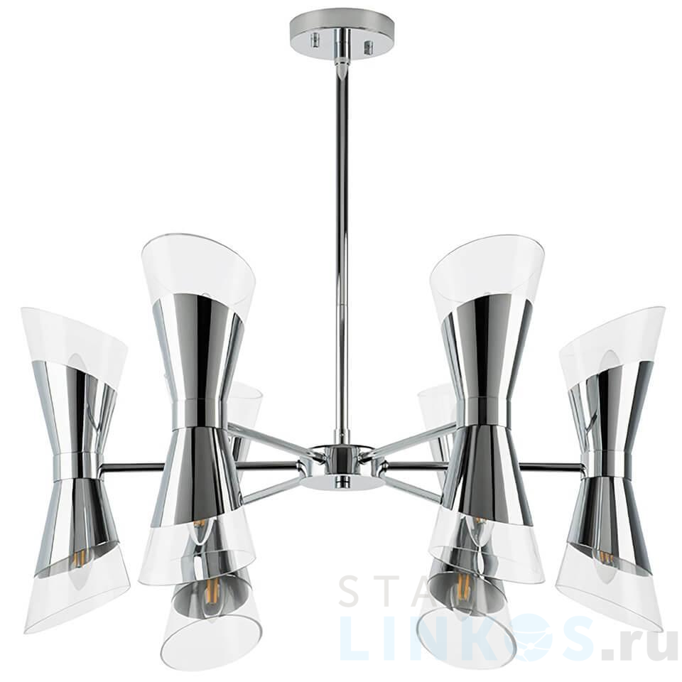 Поставщик рекомендует использовать лампы накаливания с цоколем E14. Подвесная люстра Lightstar Strato 817124 в стиле арт-деко используется в интерьере кухни с установкой на потолок.
