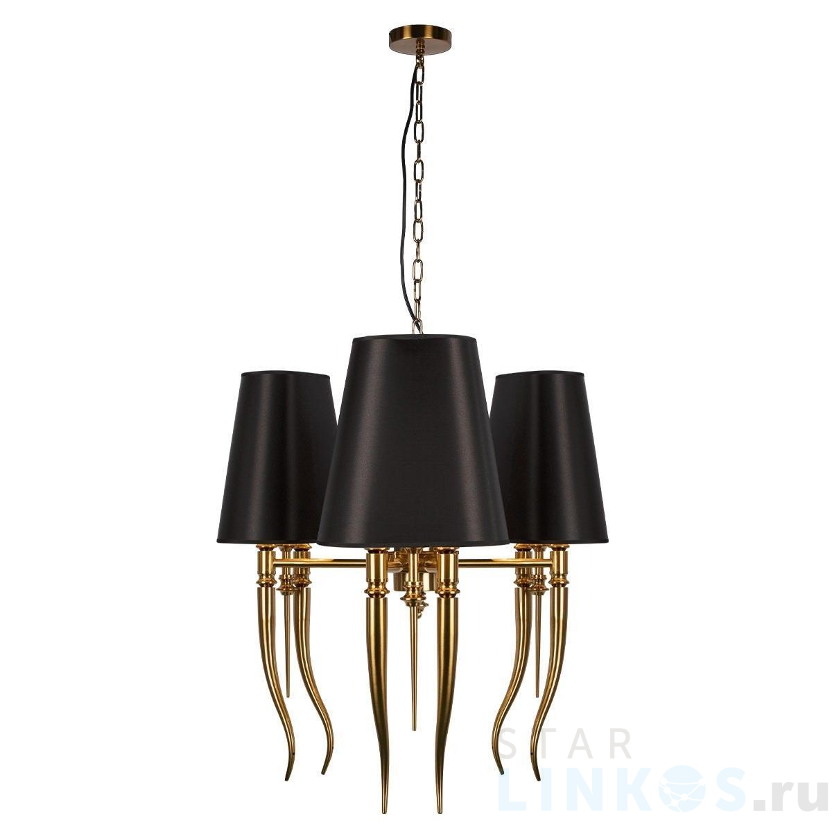 Поставщик рекомендует использовать лампы накаливания с цоколем E14. Подвесная люстра Loft IT Brunilde 10207/6 Gold в стиле арт-деко используется в интерьере гостиной с установкой на потолок.