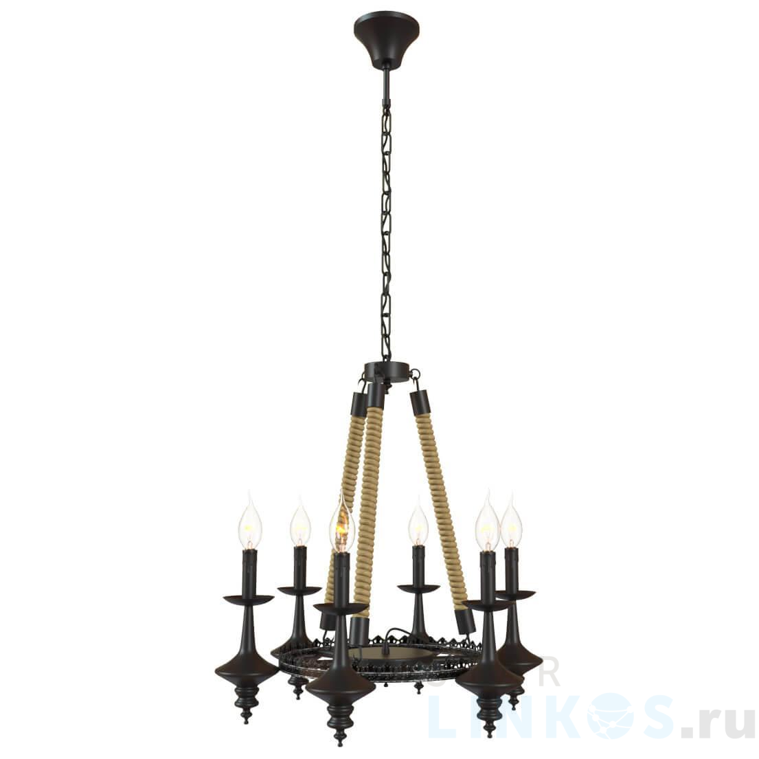 Поставщик рекомендует использовать лампы накаливания с цоколем E14 для освещения площади 13,3 м2. Подвесная люстра Loft IT Castle Loft1862-6 в стиле лофт используется в интерьере спальни с установкой на потолок.